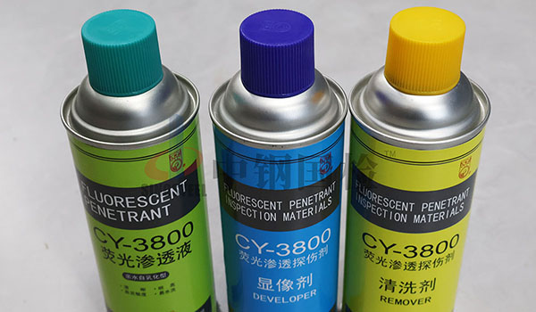 工件表面被施涂含有熒光染料或著色染料的滲透液后,在毛細(xì)作用下經(jīng)一定的時間的滲透,滲透液可以滲進(jìn)表面開口缺陷中。隨后去除工件表面多余的滲透液,干燥后再在工件表面施涂吸附介質(zhì)——顯象劑。顯象劑在毛細(xì)作用下將吸附缺陷中的滲透液,使?jié)B透液回滲到顯象劑中,在一定的光源下(黑光或白光),缺陷處非滲透液痕跡被顯示出來(黃綠色熒光或鮮艷紅色),從而探測出缺陷的形貌和分布狀態(tài)。