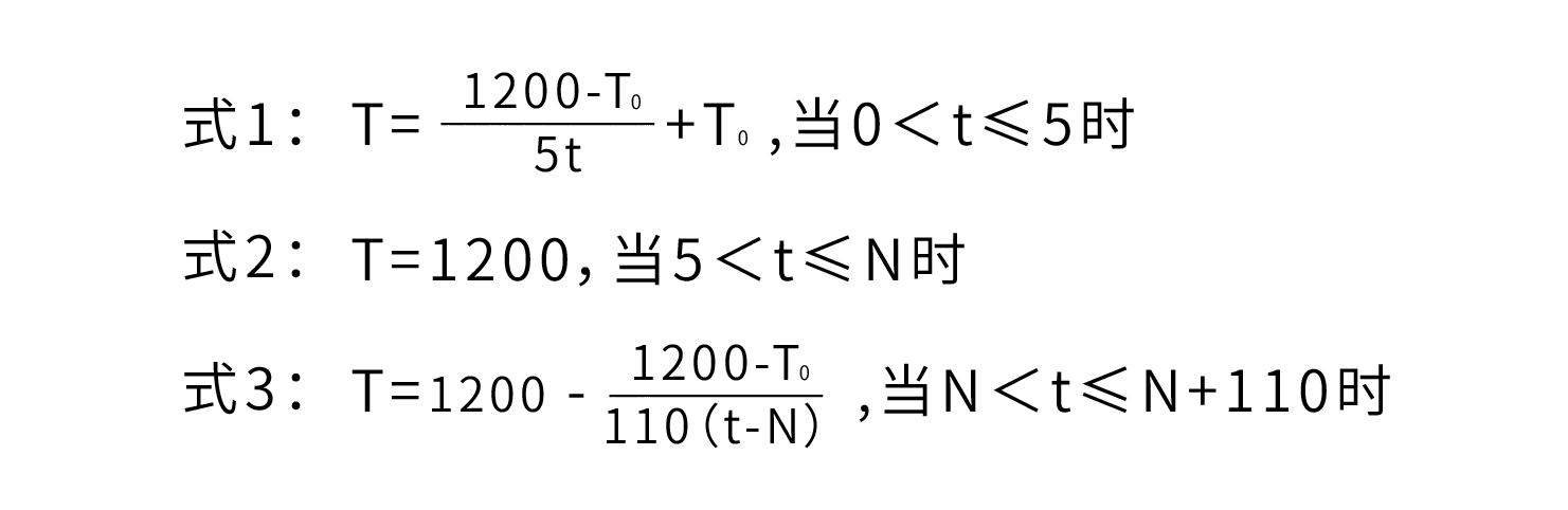 耐火試驗爐內(nèi)的溫度-時間關(guān)系用下式表示: