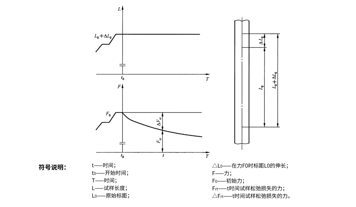 等溫應力松弛試驗是在給定溫度下(如無特殊規(guī)定,試驗溫度通常為20℃),將試樣保持一定長度(L0+△L0),從給定的初始力開始,測定試樣上力的變化。試驗時,在給定時間內(nèi)力的損失以初始力的百分比進行表示。