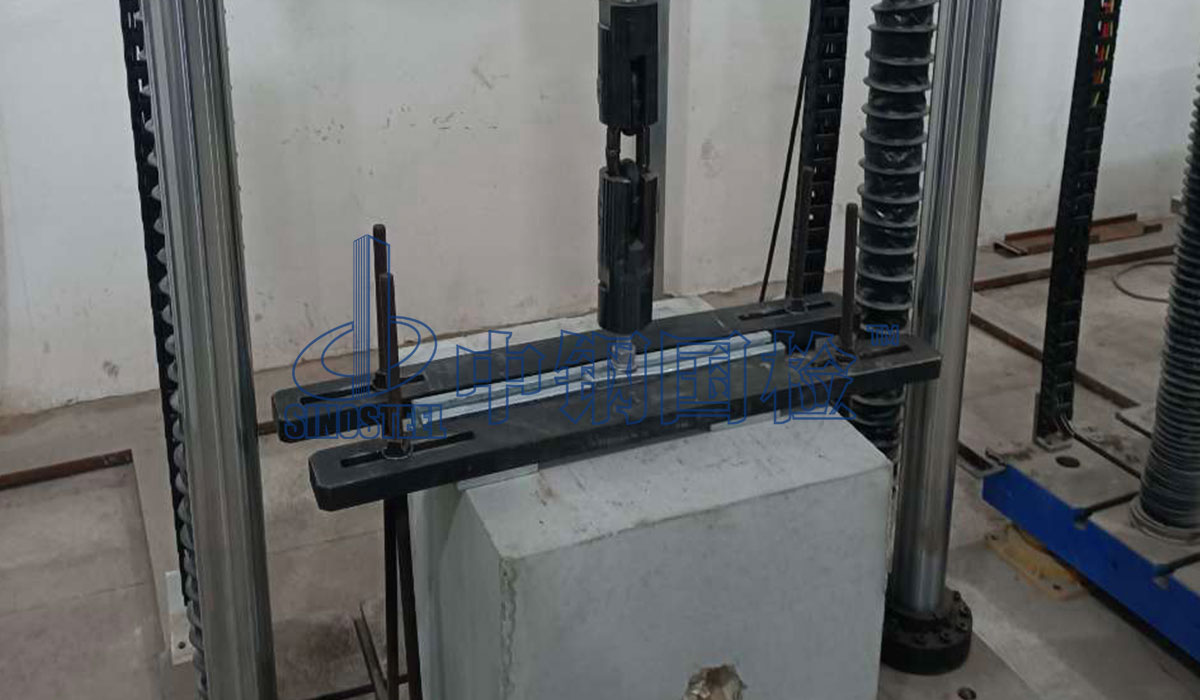 預制在混凝土試塊中的預埋槽道靜承載力檢測宜采用萬能材料試驗機或其他設備進行,儀器準確度應滿足試驗要求,試驗加載方法和速度應符合相關(guān)標準規(guī)范,最終加荷至預埋槽道破壞,檢測出預埋槽道極限荷載。
