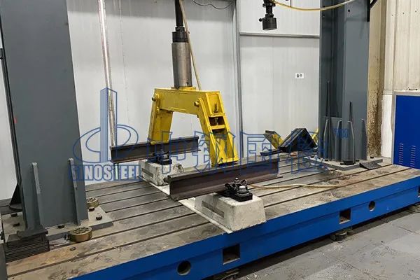 將短鋼軌用扣件組裝在被錨定的軌枕的承軌面上,并對(duì)鋼軌施加縱向拉力,記錄荷載及鋼軌相對(duì)于軌枕的縱向位移,當(dāng)鋼軌滑移時(shí)卸載。從荷載-位移曲線上得出鋼軌縱向阻力。