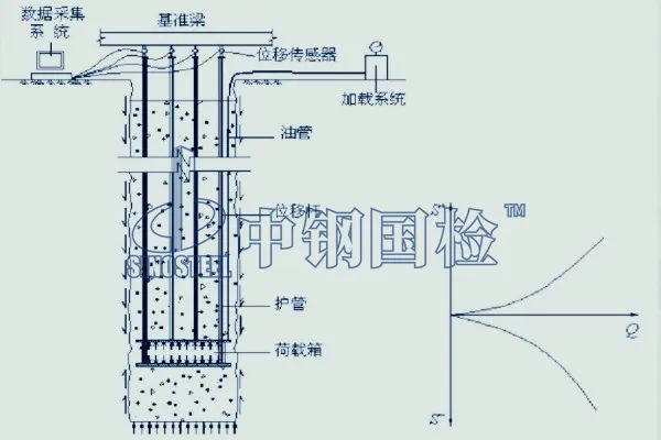 2、極限樁端阻力大于樁側(cè)極限摩阻力時(shí),荷載箱置于樁端,根據(jù)樁的長(zhǎng)徑比、地質(zhì)情況在樁頂提供一定量的配重,或用小直徑樁模擬,先測(cè)出極限樁端承載力,再根據(jù)實(shí)際尺寸換算總的樁端阻力值。