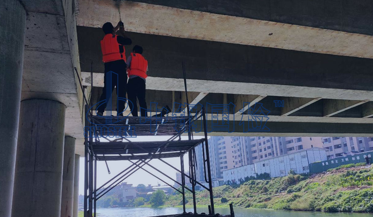 除檢測混凝土有無開裂及裂縫是否超限,有無滲水、蜂窩、麻面、剝落、掉角、空洞、孔洞、露筋及鋼筋銹蝕,混凝土碳化深度等問題,還應(yīng)檢查橋面線形及結(jié)構(gòu)變位情況,主梁有無積水、滲水,箱梁通風(fēng)是否良好。