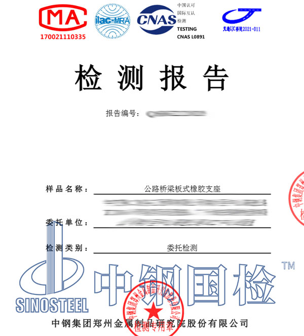 中鋼國檢深耕行業(yè)40年,有著豐富的道路橋梁檢測經驗,下面就是廣東省中山市某單位委托中鋼國檢做的公路橋梁板式橡膠支座檢測報告,詳細內容如下: