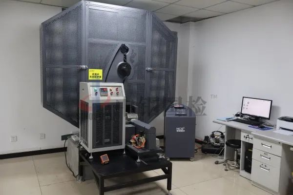試驗(yàn)開始后,將規(guī)定幾何缺口的試樣放置在試驗(yàn)機(jī)兩支座之間,缺口背向打擊面放置,用擺錘打擊在試樣上,測(cè)定試樣的吸收能力。試驗(yàn)結(jié)束后,若試件沒(méi)有完全斷裂,可以報(bào)出沖擊吸收能量,或與完全斷裂的試樣結(jié)果平均后報(bào)出。
