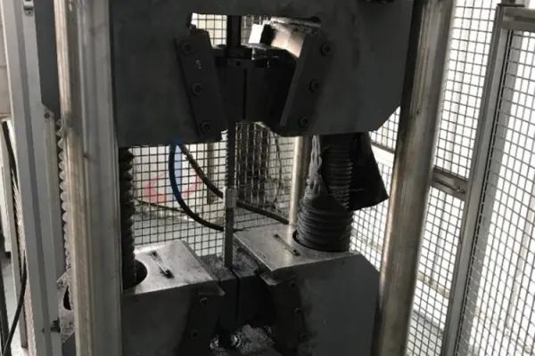 試驗(yàn)采用拉力試驗(yàn)機(jī)或萬能試驗(yàn)機(jī)。夾緊裝置應(yīng)根據(jù)試樣規(guī)格選用,注意在試驗(yàn)過程中不得與鋼筋產(chǎn)生相對(duì)滑移。試驗(yàn)時(shí),夾具拉桿應(yīng)夾緊與試驗(yàn)機(jī)的上鉗口,試樣的鋼筋應(yīng)穿過墊板中心孔夾緊于試驗(yàn)機(jī)的下鉗口內(nèi)。然后對(duì)試樣進(jìn)行軸向拉伸試驗(yàn),注意加載應(yīng)該連續(xù)平穩(wěn)進(jìn)行,試驗(yàn)速率應(yīng)符合要求。將試樣拉至斷裂或出現(xiàn)頸縮為止,自動(dòng)采集最大力或從測力盤上讀取最大力,也可從拉伸曲線圖上確定試驗(yàn)過程中的最大力。