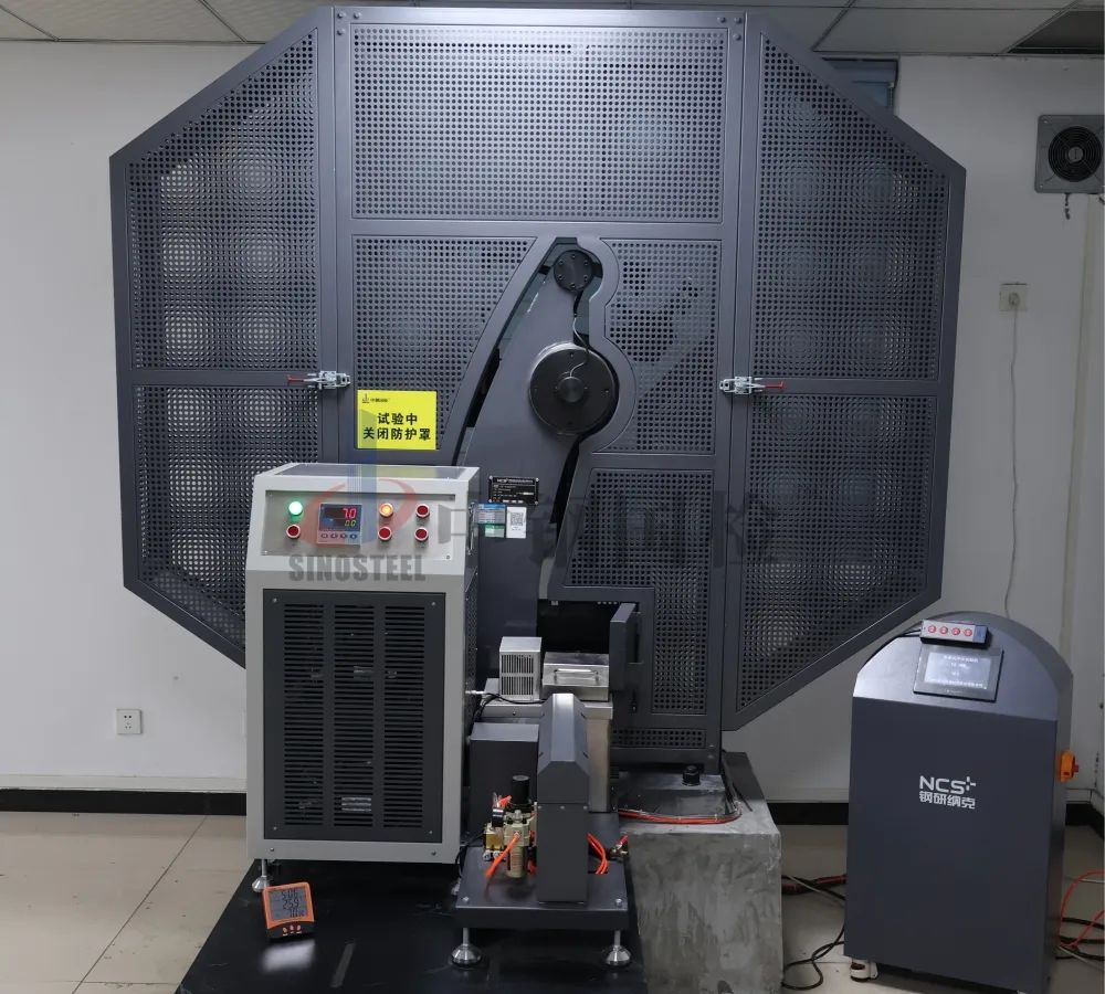 試樣按要求截取,緊貼試驗(yàn)機(jī)砧座放置,擺錘刀刃沿缺口對(duì)稱面打擊試樣缺口的背面,試樣缺口對(duì)稱面偏離兩砧座間的中點(diǎn)不應(yīng)大于0.5mm。沖擊試樣的吸收能量不應(yīng)大于實(shí)際初始勢能的80%。在冷卻試樣時(shí),可以采用液體介質(zhì)冷卻也可以采用氣體介質(zhì)冷卻。試樣試驗(yàn)后若沒有完全斷裂,可以報(bào)出沖擊吸收能量。若由于試驗(yàn)機(jī)打擊能量不足,試樣未完全斷開,吸收能量不能確定,在報(bào)告中注明。若試樣卡在試驗(yàn)機(jī)上,試驗(yàn)結(jié)果無效,應(yīng)徹底檢查試驗(yàn)機(jī),以免影響測量的準(zhǔn)確性。