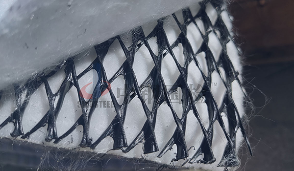 復(fù)合排水網(wǎng)最終是各組成部分共同作用,所以還要對其復(fù)合體進行強度等方面的檢測。很多產(chǎn)品由于土工布和排水網(wǎng)芯二者拉伸性能和機理的差異,使復(fù)合體的拉伸強度不能很好的同步疊加,在復(fù)合體拉伸直至材料全部斷裂過程中,拉伸強度的提高并不明顯。