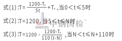 可采用隧道火災(zāi)RABT-ZTV升溫曲線來評(píng)價(jià)預(yù)埋槽道在隧道火災(zāi)RABT-ZTV升溫條件下的耐火性能。如需評(píng)價(jià)其他條件下預(yù)埋槽道的耐火性能,可采用其他升溫曲線。在隧道火災(zāi)RABT-ZTV升溫條件下,耐火試驗(yàn)爐內(nèi)的溫度-試件關(guān)系式如下: