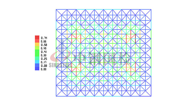 檢查網(wǎng)架結(jié)構(gòu)體系與構(gòu)件布置是否合理,結(jié)構(gòu)平面布置是否規(guī)則,有無明顯的傾斜和變形現(xiàn)象,結(jié)構(gòu)傳力路徑是否明確。