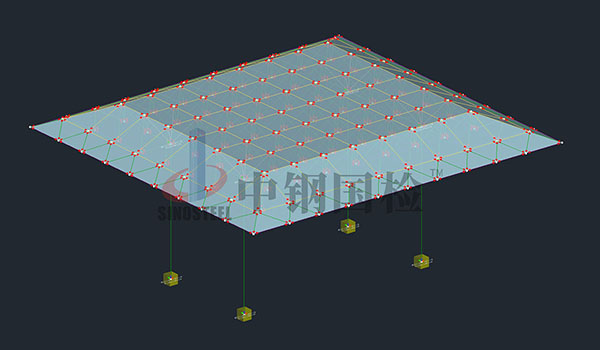 對該網(wǎng)架結(jié)構(gòu)桿件自身、球節(jié)點、支座部位、屋面檁條、屋面板、支柱及柱腳區(qū)域、基礎(chǔ)進行全面排查,明確部位及缺陷性質(zhì),逐一記錄。
