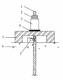 注:1-試驗(yàn)錨桿;2-工具錨;3-穿心式千斤頂;4-承壓板;5-腰梁或臺(tái)座;6-支擋結(jié)構(gòu);7-位移測(cè)量裝置