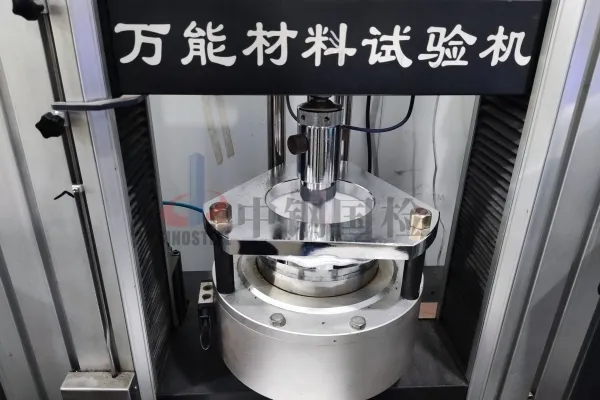 將試樣固定在規(guī)定的環(huán)形夾具內(nèi),用與試樣面垂直的頂桿以一定的速率頂向試驗中心直至刺破,并記錄試驗過程中的最大刺破強力。
