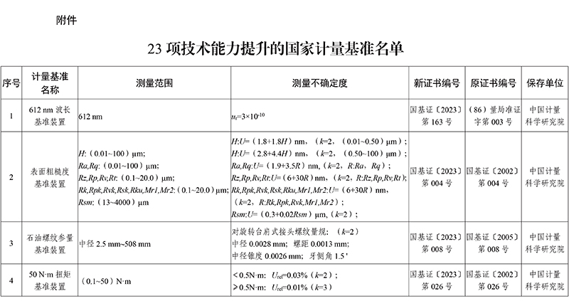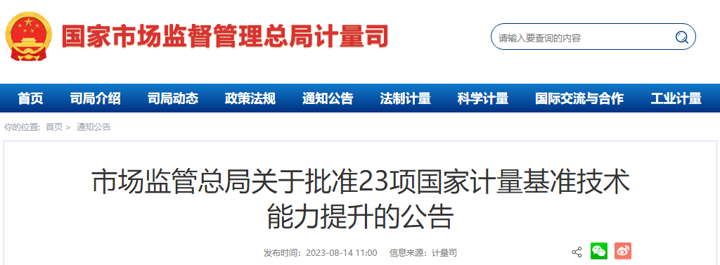 市場監(jiān)管總局關(guān)于批準(zhǔn)23項國家計量基準(zhǔn)技術(shù)能力提升的公告