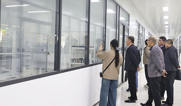 正式交流前,張鈁及相關(guān)技術(shù)人員陪同陳吉強一行參觀了中鋼國檢各試驗室。在參觀過程中,中鋼國檢的專業(yè)技術(shù)人員詳細介紹了各類檢測設(shè)備的工作原理、技術(shù)參數(shù)以及在實際項目中的應(yīng)用案例,并重點介紹了72000kN減隔震裝置試驗系統(tǒng)、金屬材料拉伸性能全自動檢測系統(tǒng)、油漆涂料自動化制樣系統(tǒng)等重要檢測裝備,及智慧化管理大屏,現(xiàn)場演示了自動裁床在土工材料制樣方面的效率與精度優(yōu)勢。
