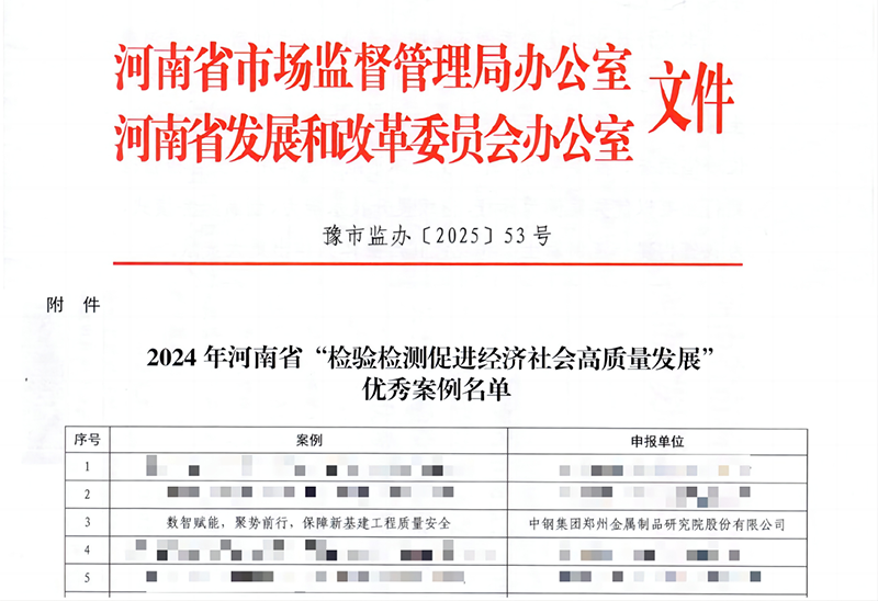 近日,河南省市場(chǎng)監(jiān)督管理局與河南省發(fā)展和改革委員會(huì)聯(lián)合發(fā)布2024年“檢驗(yàn)檢測(cè)促進(jìn)經(jīng)濟(jì)社會(huì)高質(zhì)量發(fā)展”優(yōu)秀案例結(jié)果。中鋼國(guó)檢憑借“數(shù)智賦能,聚勢(shì)前行,保障新基建工程質(zhì)量安全”項(xiàng)目成功入選,成為全省檢驗(yàn)檢測(cè)領(lǐng)域的創(chuàng)新標(biāo)桿。