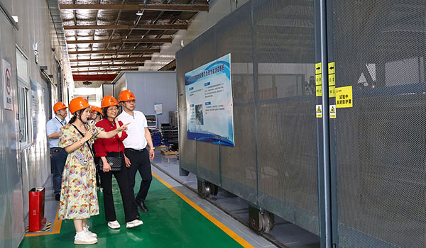 座談交流前,新能源業(yè)務(wù)主任崔磊及相關(guān)技術(shù)人員陪同王志軍一行參觀了中鋼國檢各檢測所試驗室,參觀過程中重點向來訪嘉賓介紹了中鋼國檢在鐵路工程材料、減隔震裝置、金屬材料、化學(xué)分析等方面的檢測優(yōu)勢。