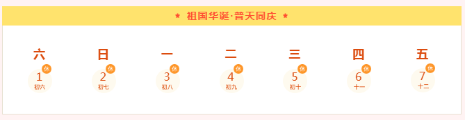 根據(jù)國家相關(guān)文件精神,中鋼國檢的小伙伴也將迎來自己的十一假期,具體時(shí)間為10月1日(星期六)至10月7日(星期五),似乎已經(jīng)聽到小伙伴的吶喊聲了。