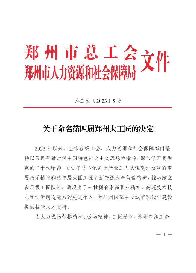 鄭州市總工會、鄭州市人力資源和社會保障局舉行此次評選旨在動員全市廣大職工以“鄭州大工匠”為榜樣,傳承和弘揚執(zhí)著專注、精益求精、一絲不茍、追求卓越的工匠精神,樹立終身學(xué)習(xí)理念,錘煉過硬本領(lǐng),勇于創(chuàng)新創(chuàng)造,不斷提升技術(shù)技能水平,爭做奮進(jìn)新時代的高素質(zhì)勞動者。