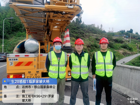 2022年7月四川片區(qū)利用子公司吉林正達甲級資質(zhì)中標四川省營山至達州高速公路交工驗收檢測,此次中標是中心歷史首個高速公路交竣工業(yè)務(wù),也是王禾佳個人第一個獨立負責(zé)的項目組。下圖中為營達高速羅家坡大橋準備乘坐橋檢車下橋檢查時留念。