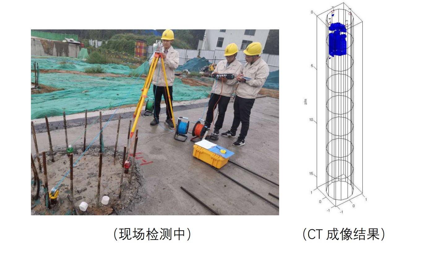 此方法通過對各個檢測面的聲速、波幅及PSD值判定,可以得到樁身的完整性類別,CT成像則能對樁身的缺陷位置等質(zhì)量情況進行3D繁衍展示,測試效果更直觀。