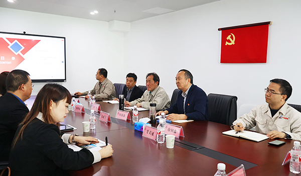 參觀結(jié)束,交流會(huì)在中鋼國檢大樓三樓會(huì)議室舉行,洪濤再次對(duì)張輝赤一行的到來表示熱烈的歡迎,張輝赤對(duì)中鋼國檢的熱情接待表示感謝。會(huì)議伊始,信息部部長伊西特就中鋼國檢的發(fā)展歷程、檢測能力、業(yè)務(wù)布局、數(shù)智化建設(shè)及應(yīng)用等內(nèi)容進(jìn)行了匯報(bào)與分享。交流中,雙方都表達(dá)了對(duì)未來進(jìn)一步合作的期待,并就數(shù)智化檢測、核電材料檢測等內(nèi)容進(jìn)行了深入的探討。