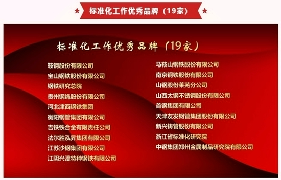 會(huì)上發(fā)布了鋼鐵企業(yè)優(yōu)秀品牌,其中標(biāo)準(zhǔn)化工作優(yōu)秀品牌企業(yè)19家,科技宣傳優(yōu)秀品牌企業(yè)15家,信息情報(bào)優(yōu)秀品牌企業(yè)15家,知識(shí)產(chǎn)權(quán)優(yōu)秀品牌企業(yè)14家,綠色低碳優(yōu)秀品牌企業(yè)16家,智能制造優(yōu)秀品牌企業(yè)15家。我院榮獲“標(biāo)準(zhǔn)化工作優(yōu)秀品牌”獎(jiǎng),多年來(lái)我院一直將標(biāo)準(zhǔn)工作放在重要位置,對(duì)標(biāo)準(zhǔn)工作兢兢業(yè)業(yè),一絲不茍,完成多項(xiàng)國(guó)家標(biāo)準(zhǔn)或行業(yè)標(biāo)準(zhǔn)的制修訂工作,此次獲此殊榮,是國(guó)家和行業(yè)對(duì)我院標(biāo)準(zhǔn)工作階段成果的肯定。