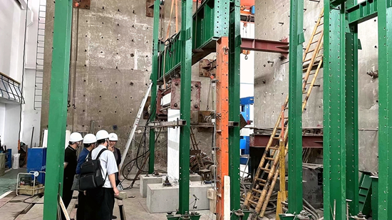 隨后,土木工程學(xué)院魯亮教授帶領(lǐng)參觀了振動(dòng)臺(tái)實(shí)驗(yàn)室,該實(shí)驗(yàn)室能開(kāi)展建筑模擬抗震、阻尼器(墻)、支座等試驗(yàn)。