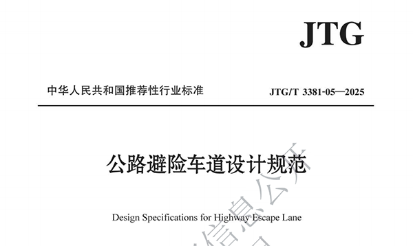 交通運(yùn)輸部2025年第40號公告發(fā)布《公路避險車道設(shè)計規(guī)范》(JTG/T3381—05—2025),作為公路工程推薦性行業(yè)標(biāo)準(zhǔn),自2025年10月1日起施行。