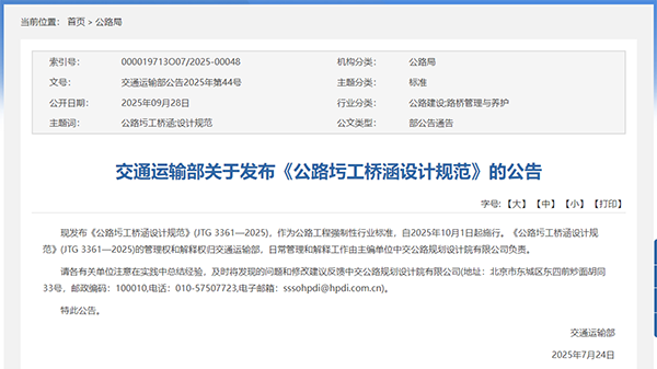 日前,交通運(yùn)輸部公開2025年第44號(hào)公告內(nèi)容,根據(jù)公告內(nèi)容,交通運(yùn)輸部發(fā)布JTG 3361—2025《公路圬工橋涵設(shè)計(jì)規(guī)范》(以下稱為設(shè)計(jì)規(guī)范),作為公路工程強(qiáng)制性行業(yè)標(biāo)準(zhǔn),并已于2025年10月1日開始施行。設(shè)計(jì)規(guī)范對(duì)提升公路橋涵工程質(zhì)量、保障結(jié)構(gòu)安全與耐久性具有重要指導(dǎo)意義。