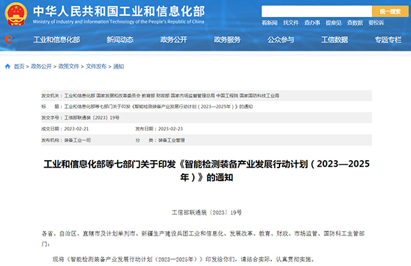 日前,工業(yè)和信息化部、國(guó)家發(fā)展和改革委員會(huì)、教育部、財(cái)政部、國(guó)家市場(chǎng)監(jiān)督管理總局、中國(guó)工程院、國(guó)家國(guó)防科技工業(yè)局七部門聯(lián)合發(fā)布關(guān)于印發(fā)《智能檢測(cè)裝備產(chǎn)業(yè)發(fā)展行動(dòng)計(jì)劃(2023—2025年)》(以下簡(jiǎn)稱為《行動(dòng)計(jì)劃》)文件的相關(guān)通知。