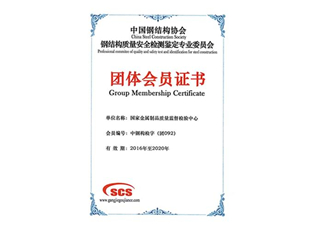 中國鋼結(jié)構(gòu)協(xié)會頒發(fā)的團(tuán)體會員證書(團(tuán)092)