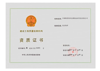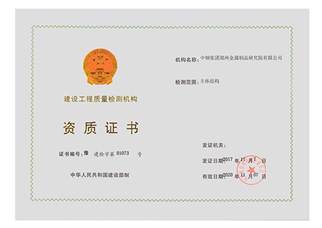 河南省住房和城鄉(xiāng)建設(shè)廳頒發(fā)的鋼結(jié)構(gòu)工程檢測資質(zhì)證書(豫建檢01073)
